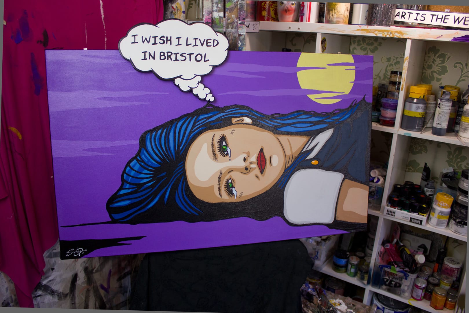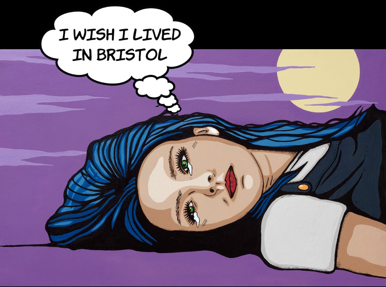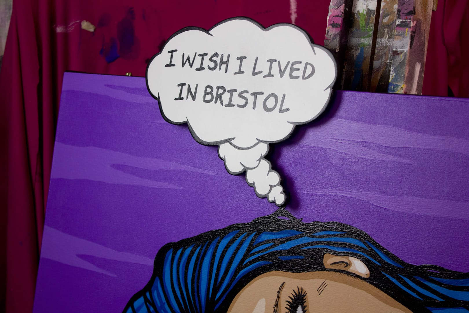 The’ I Wish I Lived In Bristol’ text bubble is a detachable 3D object and included with the painting. To add your own wish please email.